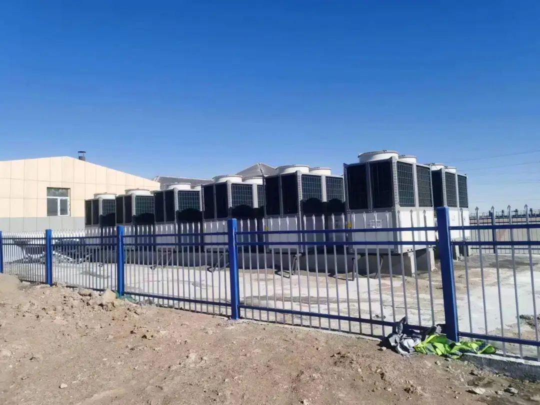 【項目介紹】當地最低氣溫零下32攝氏度,原有管道跨度較大,熱損比較嚴重,重新進行了管道改造等工作,后采用紐恩泰G60KD機組13臺,標況2184KW,整體地暖保溫良好。