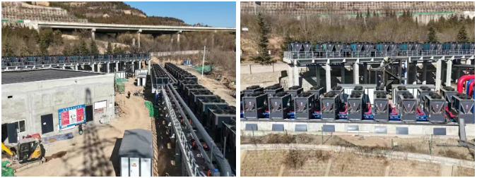 該項目采用閉式一次串并聯與輔助供暖相結合的設計方案。系統配置以80臺120P御寒系列機組為核心,分為兩組運行并搭配變頻水泵,實現按需調節,部分負荷下流量可降低至60%,節能效果顯著。同時,20臺超低溫變頻高溫復疊熱泵機組作為輔助熱源,僅在極端嚴寒天氣啟動,其80℃的高出水溫度完美匹配高溫末端需求,且平時不運行,兼顧了效率與經濟性。