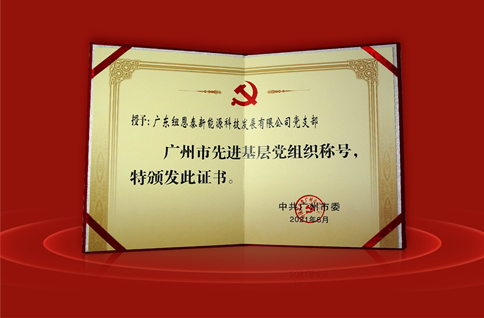 在中國共產黨成立一百周年之際,廣東紐恩泰新能源科技發展有限公司黨支部榮獲“廣州市先進基層黨組織稱號”。
